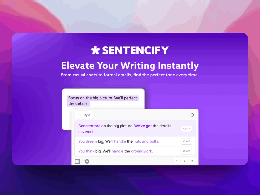 SENTENCIFY is a 100 percent free AI paraphrasing tool created to simplify rewriting within your existing workflow. It works directly inside desktop applications and browsers, removing the need for separate web editors. SENTENCIFY provides three rewritten sentence options instantly to help refine tone and clarity. By staying inside the app you are already using, it keeps writing uninterrupted. The tool delivers premium quality rewriting without subscriptions or hidden limits. This makes SENTENCIFY a reliable option for everyday editing needs.
